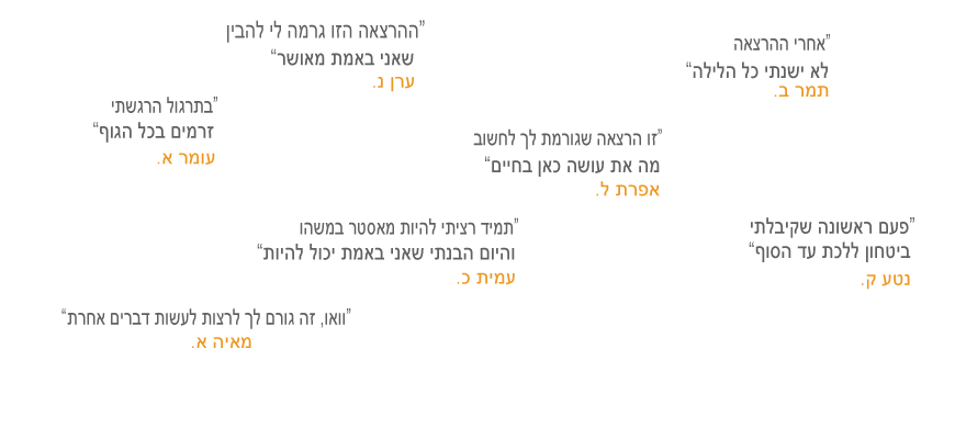 בהרצאה חווייתית שמשלבת תרגילי תאגיה בתנועה ונשימה, נצא למסע מאתגר ומעורר השראה כדי לענות על השאלות ולהבין מה לעשות כדי לקבל משמעות אמיתית לחיים שלנו ולהיות באמת מאושרים.